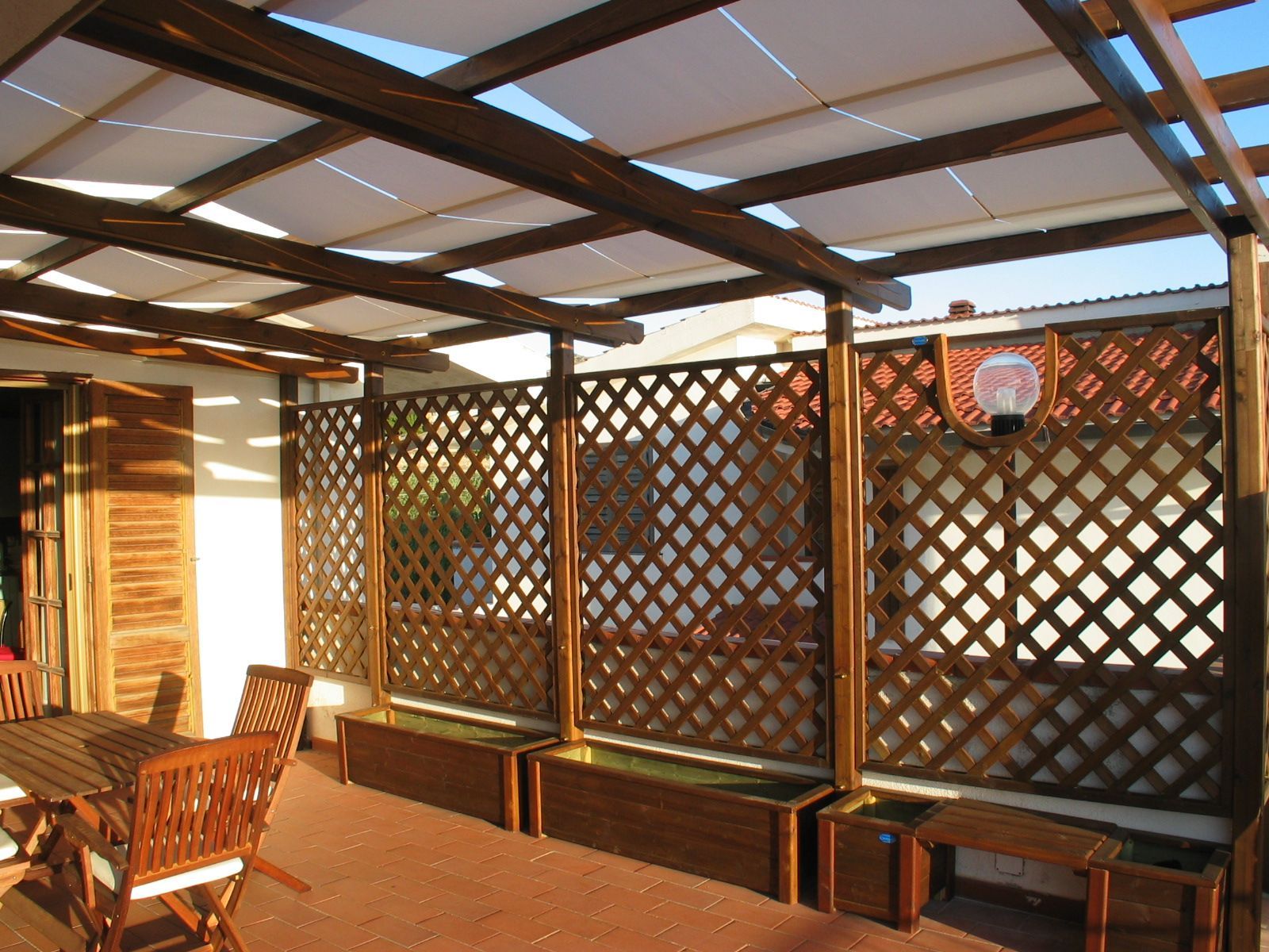 Pergola in legno con teli intrecciati